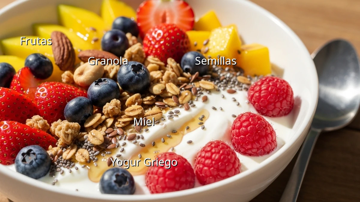 - Frutas frescas al gusto: bayas, mango, kiwi... ¡lo que tengas a mano!